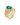 Anillo ancho en disminución bisel cordón, interior filigrana, centro esmeralda oval 1,18 ct, en orla 14 diamantes talla brillante 0,46 ct. Oro amarillo de 18K. Ancho 13 mm en disminución. Colección Alhambra.