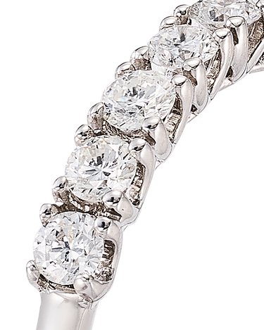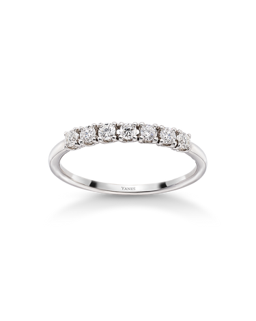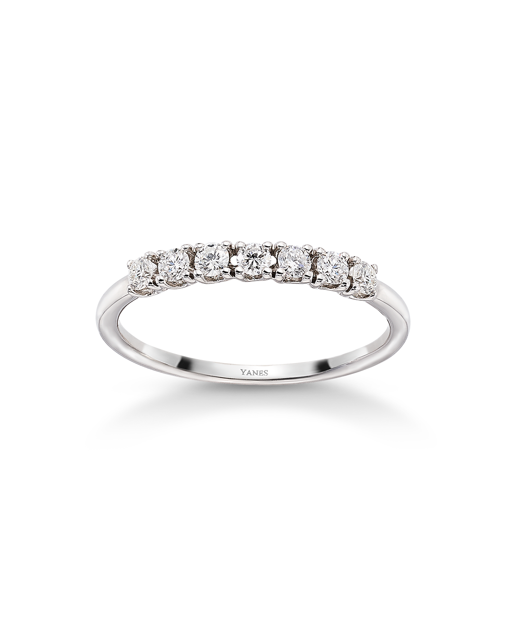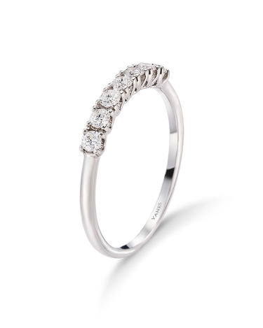 Anillo media alianza 7 diamantes talla brillante, garras en U, peso 0,45 quilates. Oro blanco de 18K. Colección Kimberly.