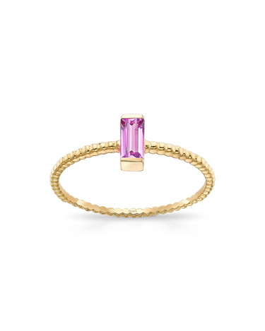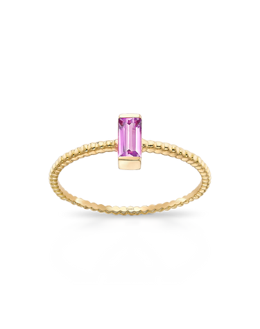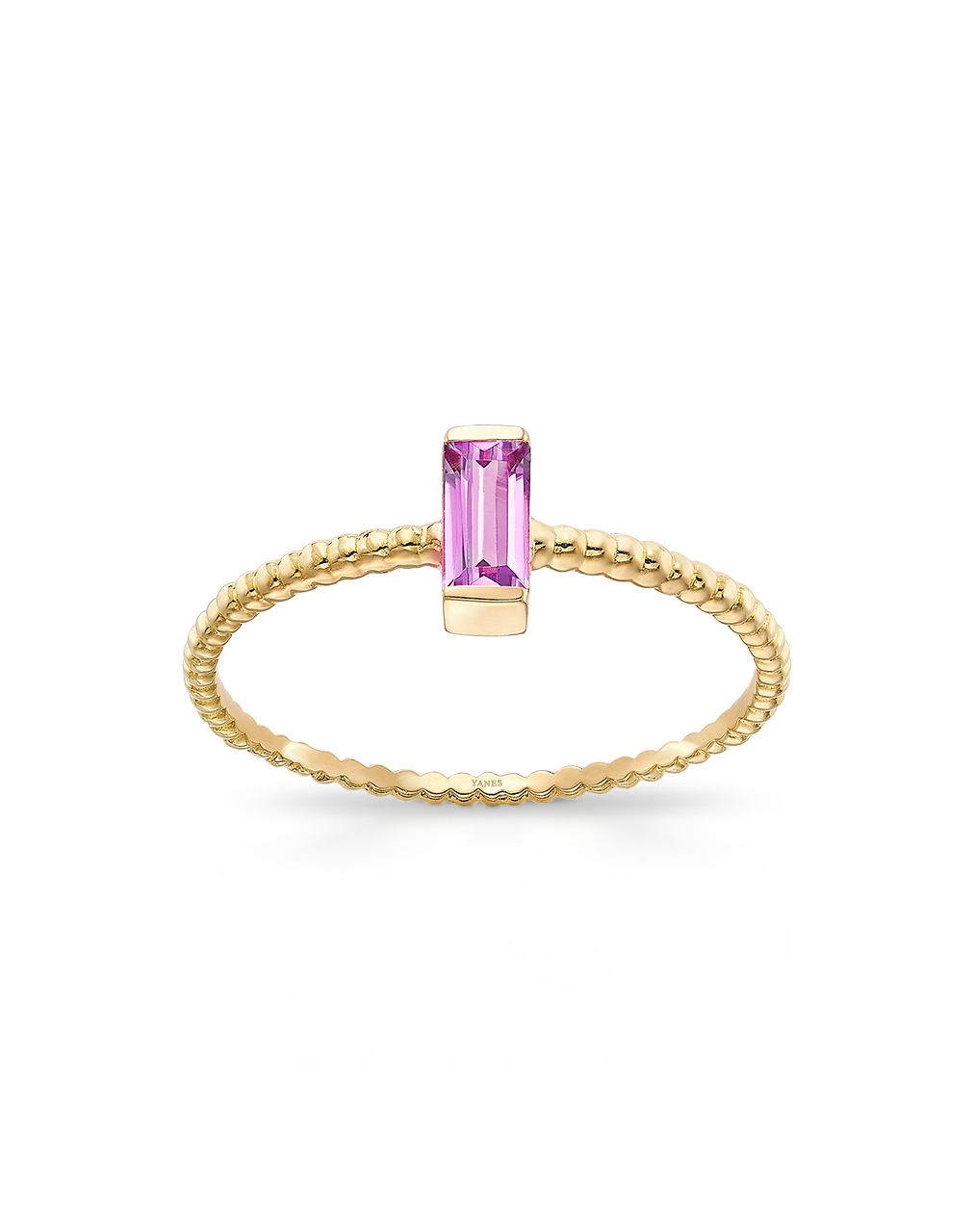 Anillo centro amatista talla esmeralda, en garras. Aro cordón. Oro amarillo de 18K. Medida motivo 6 x 3 mm. Colección Candy Colors.