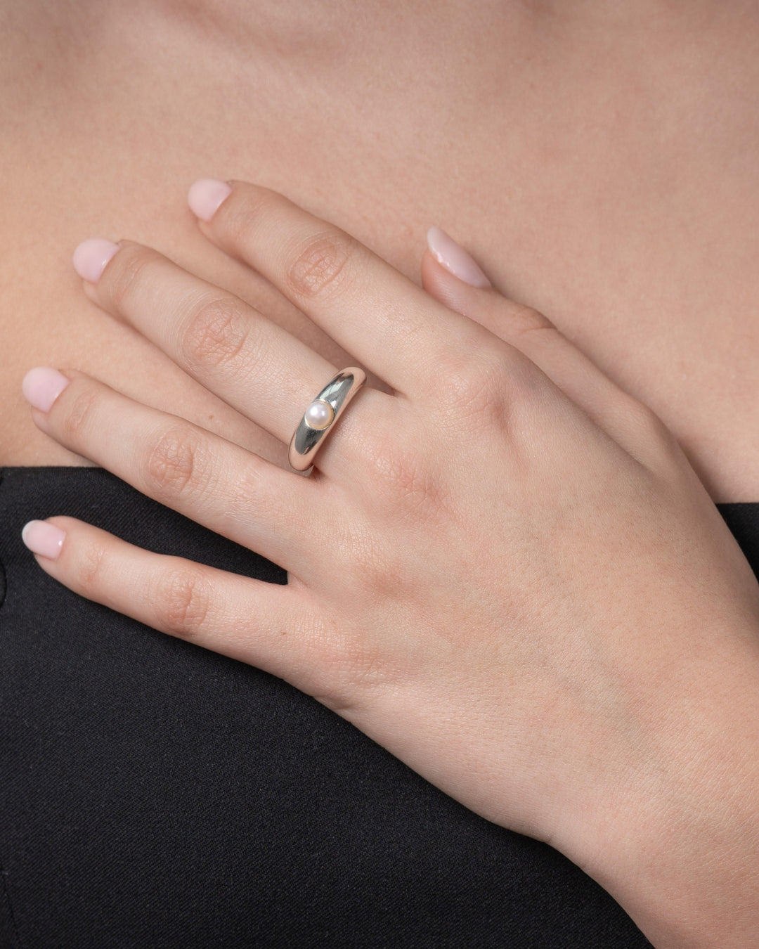 Anillo en plata de ley con perla. Colección Costa Blanca.