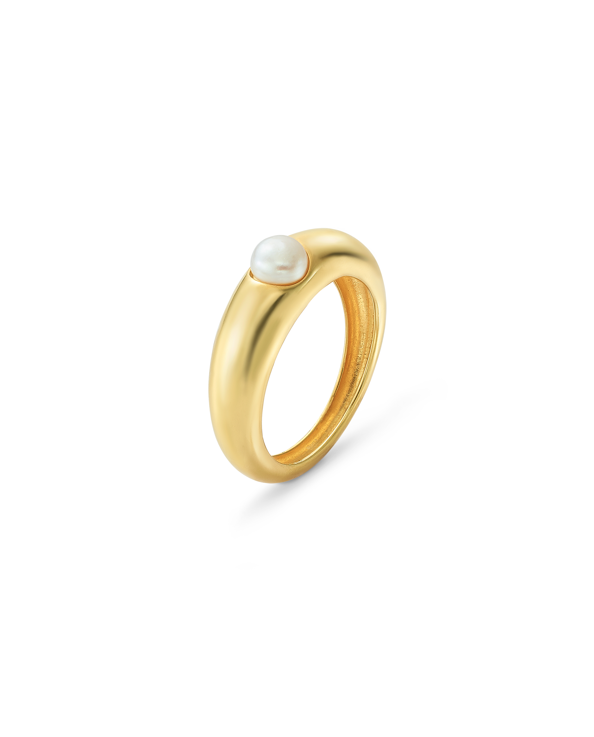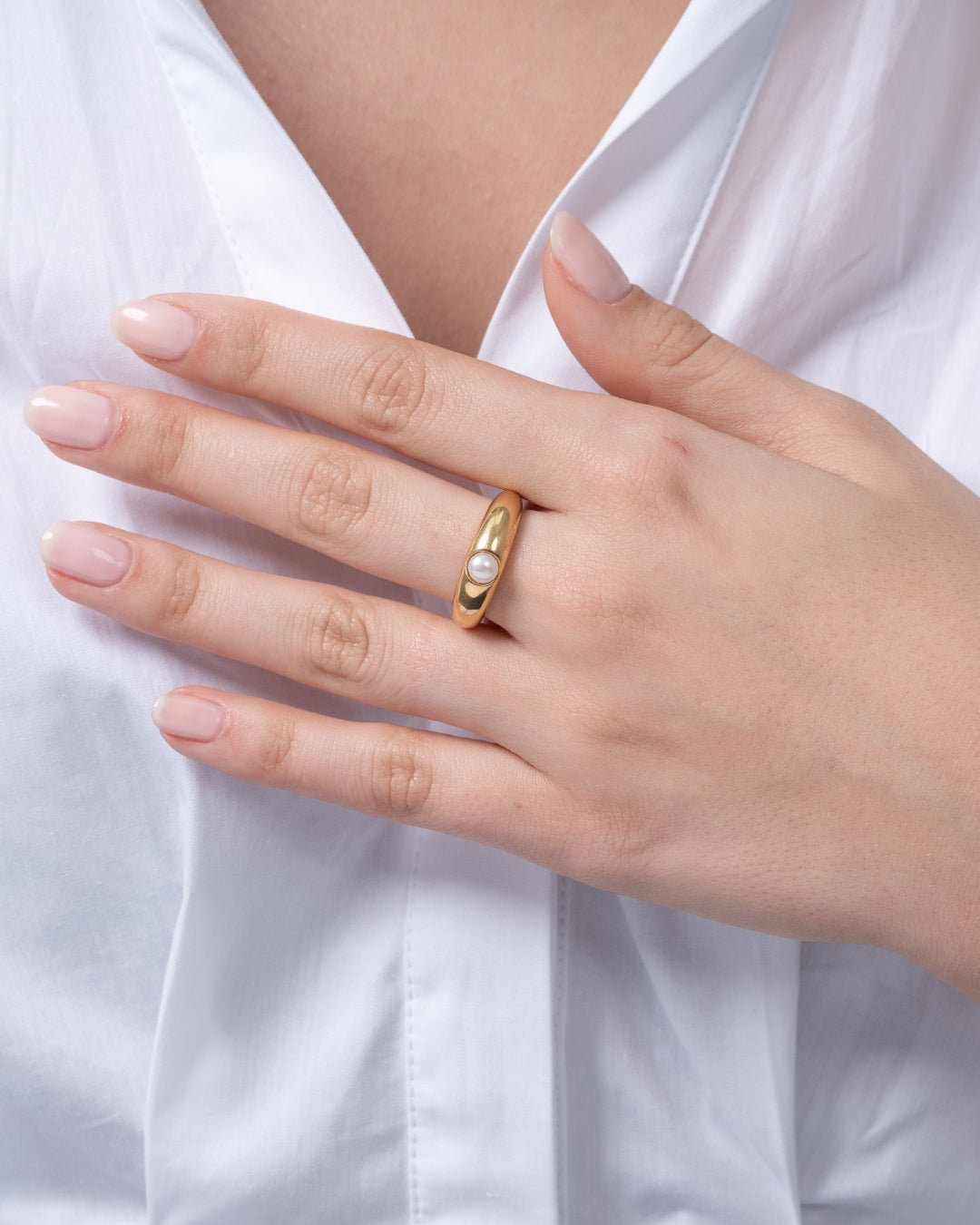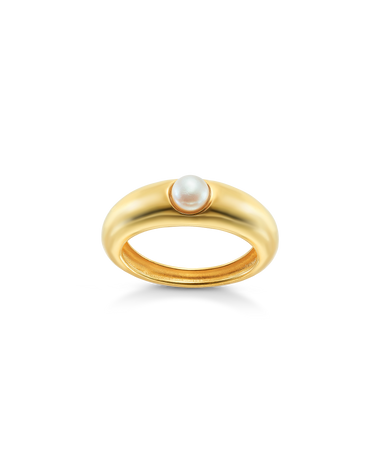 Anillo en plata de ley dorada con perla. Colección Costa Blanca.