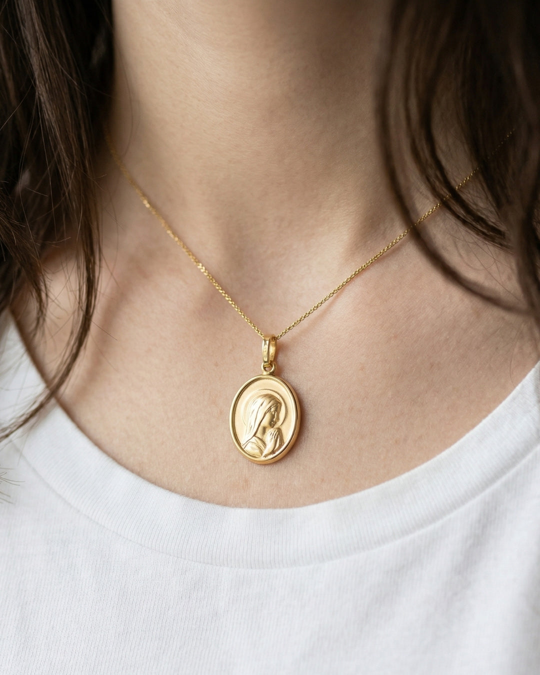 Medalla Virgen orando, oro 9K