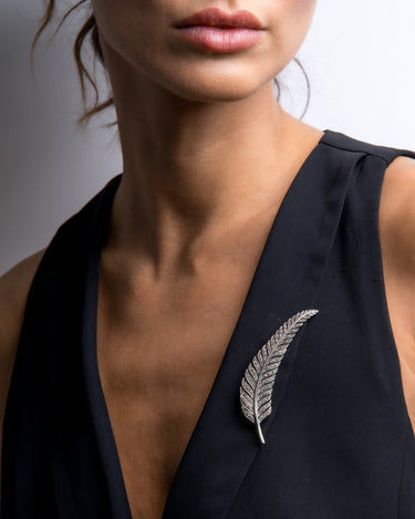 Broche Leaf marcasitas, plata