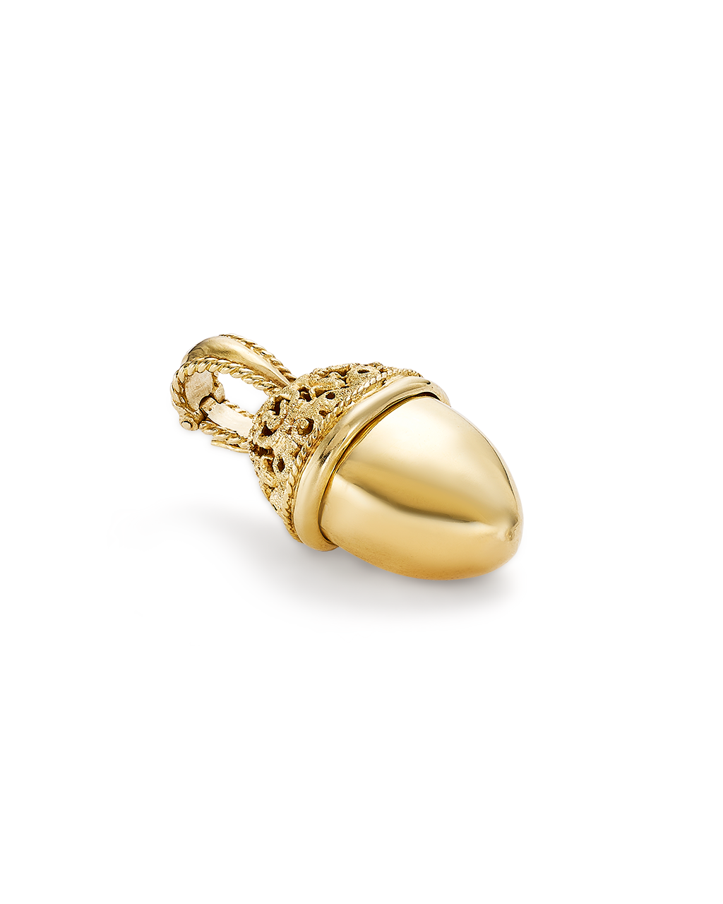 Colgante pastillero Albayzín bellota en oro amarillo de 18K. Medidas 24 x 18 mm. Colección Alhambra fabricada artesanalmente en nuestros talleres.