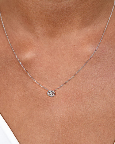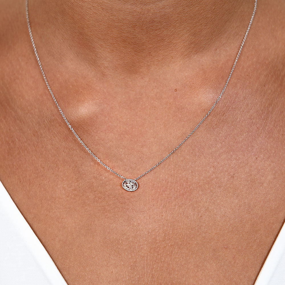 Colgante Oval Mini , oro blanco de 18K. Cadena 45 cm. Colección Alhambra fabricada artesanalmente en nuestros talleres.
