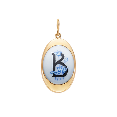 Descripción Colgante oval iniciales porcelana, plata dorada