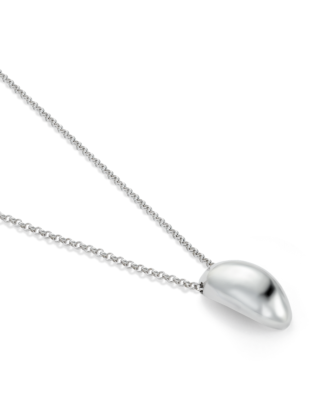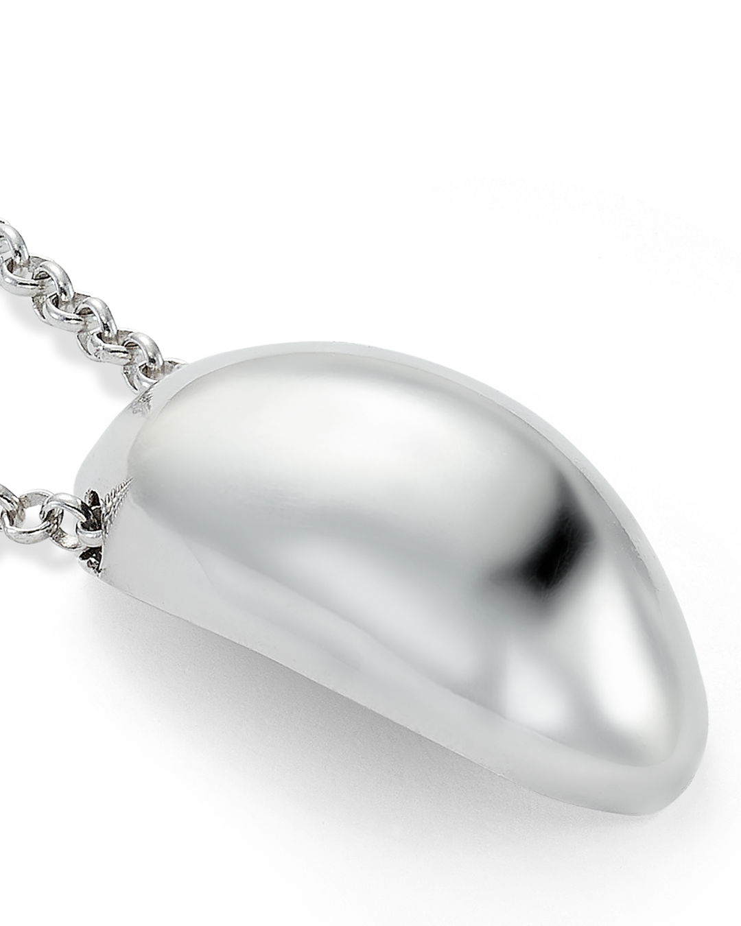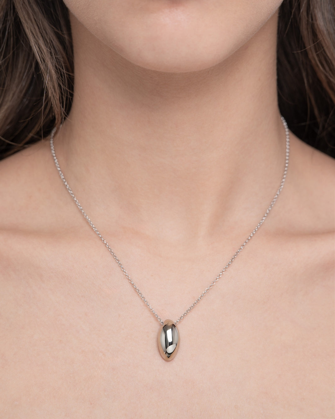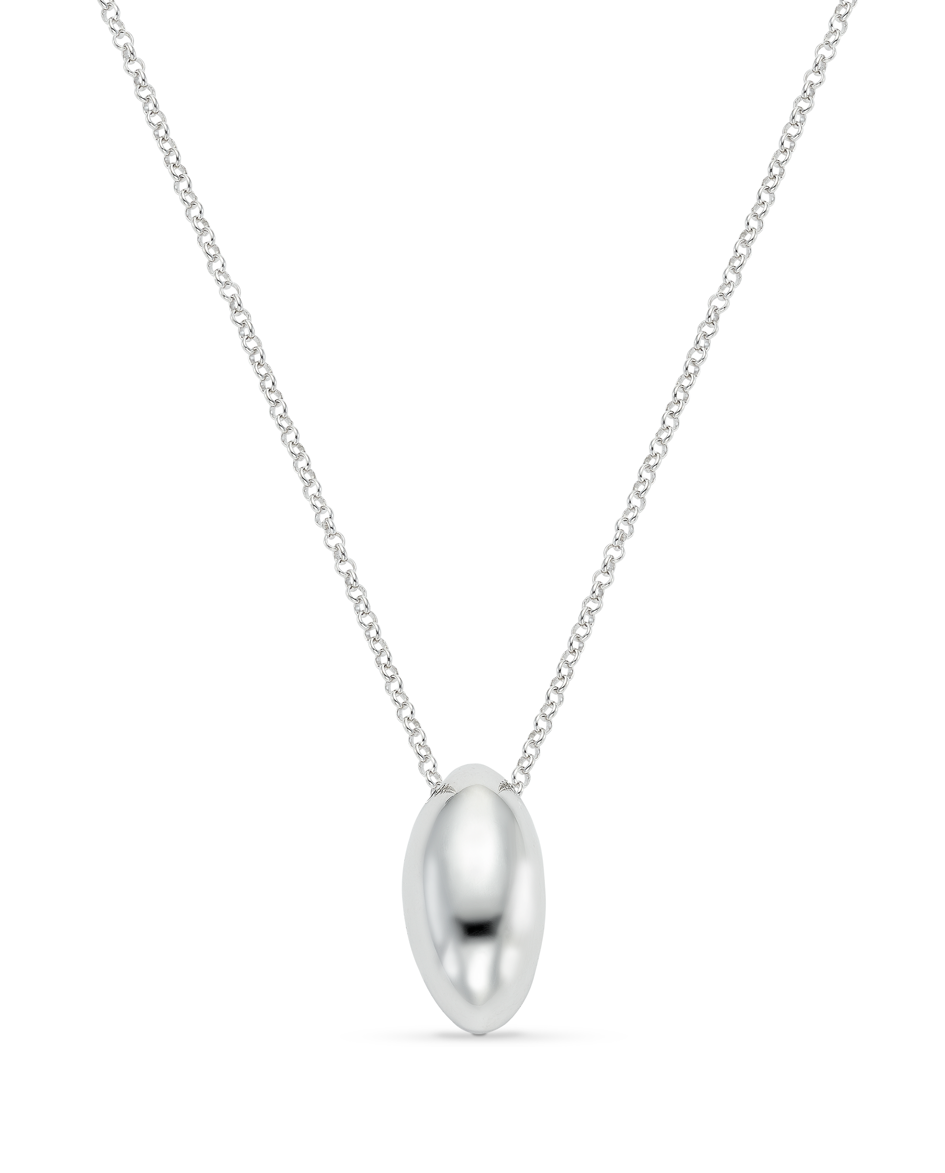 Cadena con colgante en plata de ley, botón ovalado. Largo 45 cm. Colección Costa Dálmata.