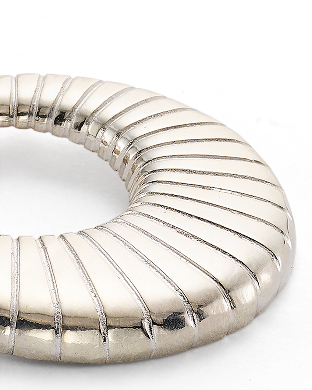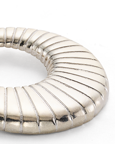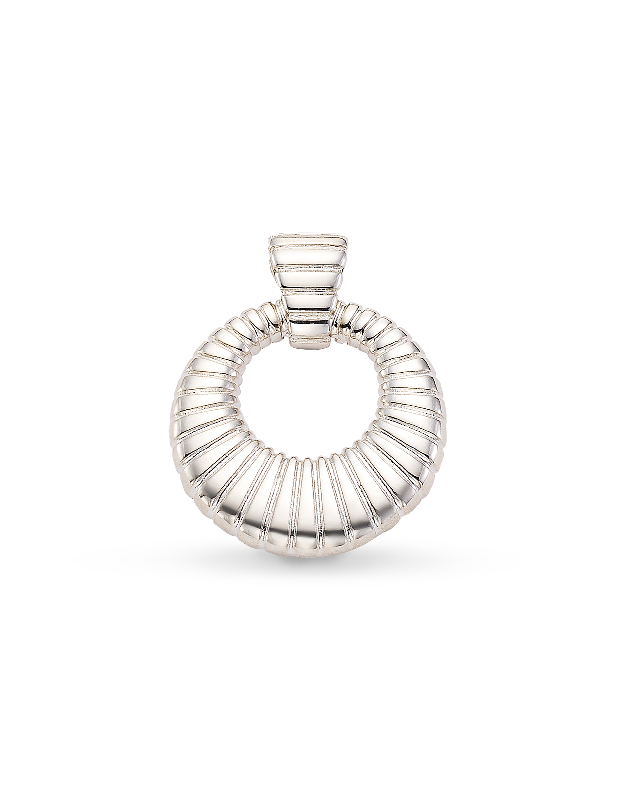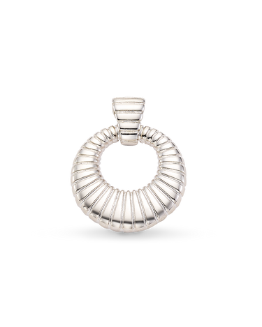 Colgante circular estriado, plata de ley. Diámetro 3,5 cm, largo total 4 cm. Colección Met.