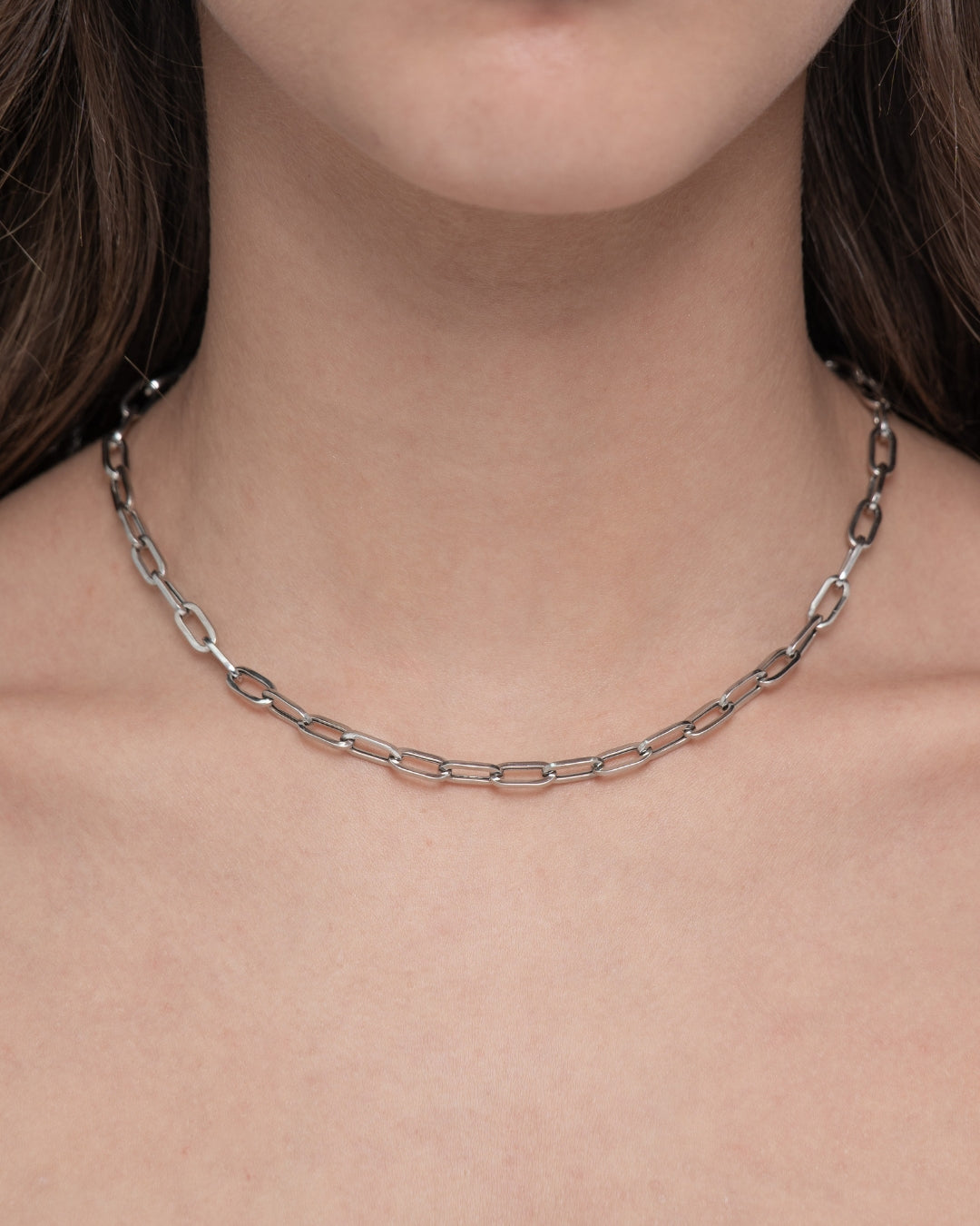 Collar en plata de ley, eslabones alargados. Largo 45 cm. Colección Costa Dálmata.