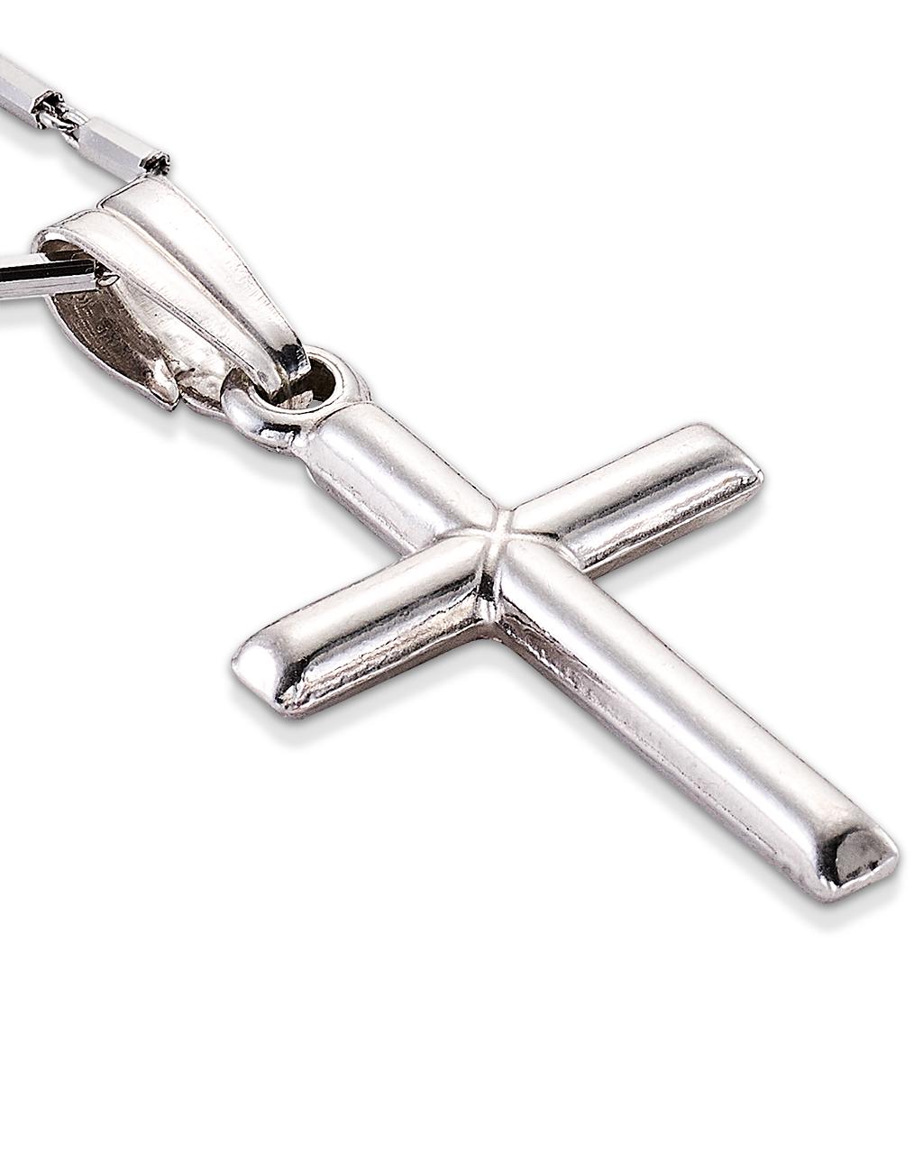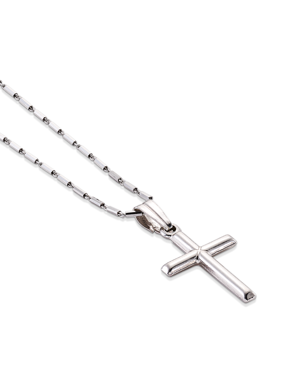 Cruz y cadena eslabones planos. Plata de ley. Medida cruz 21 x 15 mm, medida cadena 44 - 49 cm. Colección Divina.