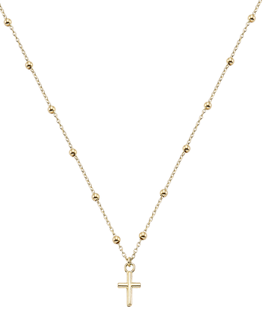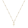 Centro mini cruz, cadena mini bolas. Oro amarillo de 18K. Medida cruz 8 x 6 mm, largo cadena 40 cm. Colección Divina.