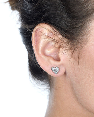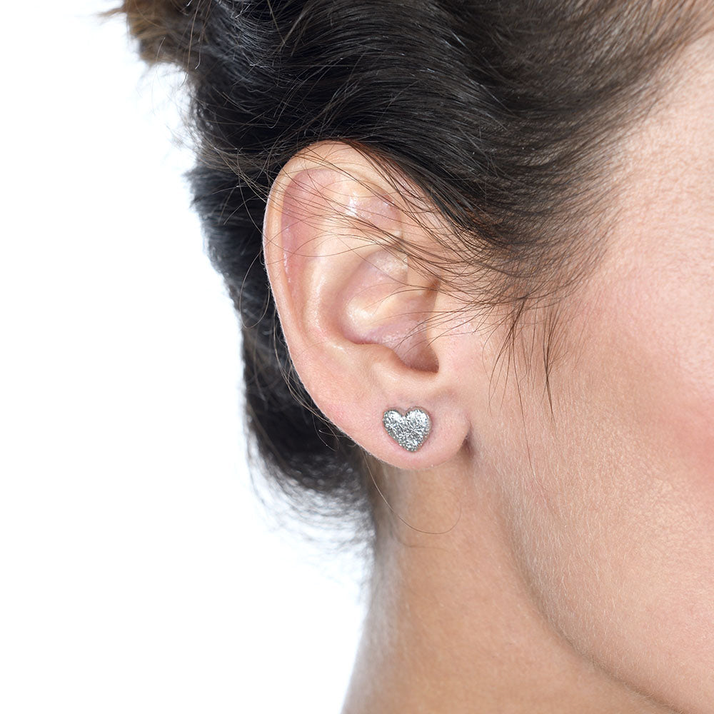 Pendientes corazón, acabado polvo de diamante, plata de ley. Motivo 8 x 8 mm. Colección Menudos Corazones.