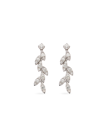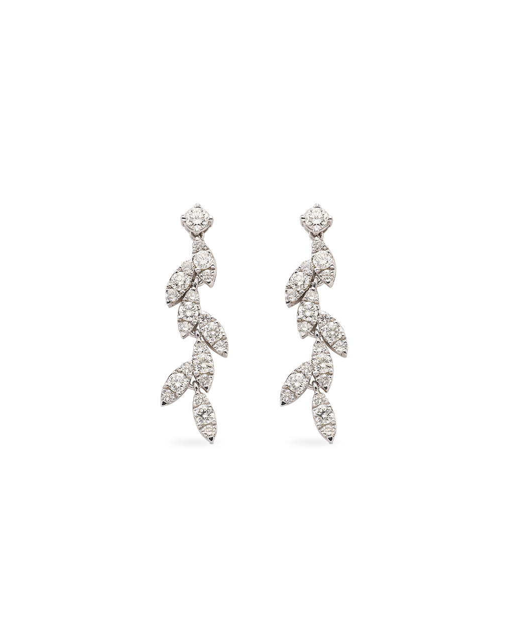 Pendiente colgante hojas 44 diamantes, talla brillante, peso 1,13 ct, en oro blanco de 18K. Largo 2,5 cm. Colección Compromiso.