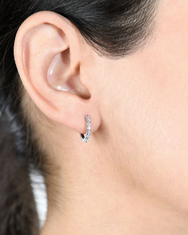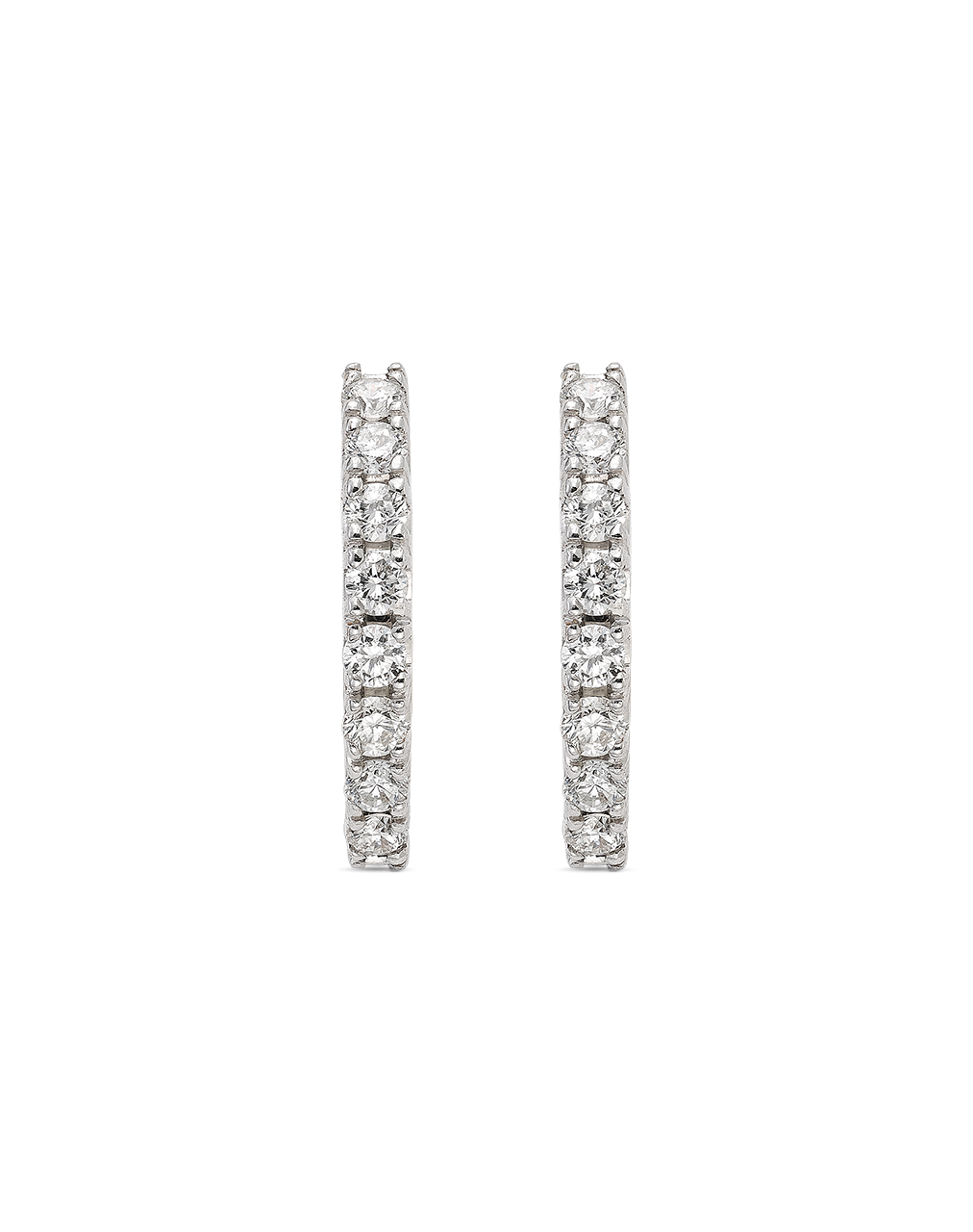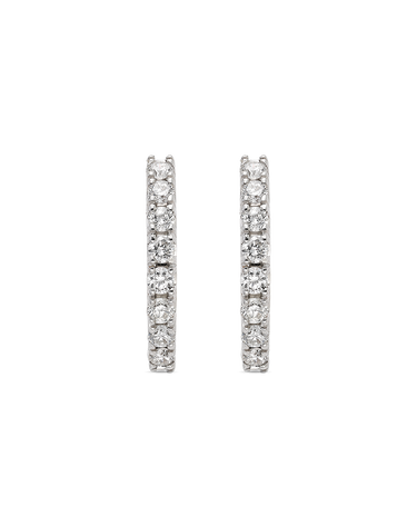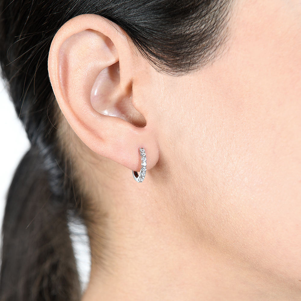 Pendientes aro diamantes, talla brillante, peso 0,25 ct, color G, pureza SI, oro blanco de 18K. Diametro 10 mm. Colección Prima.