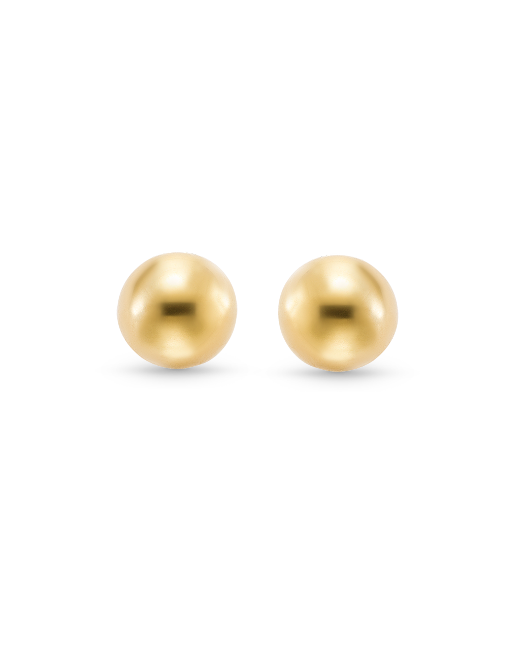 Pendientes forma media bola lisa de 4 mm en oro amarillo de 18K. Sistema de presión. Colección pendientes de bebé.