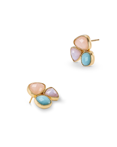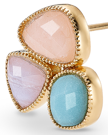 Pendientes Flora calcedonia, amazonita, cuarzo rosa, plata dorada