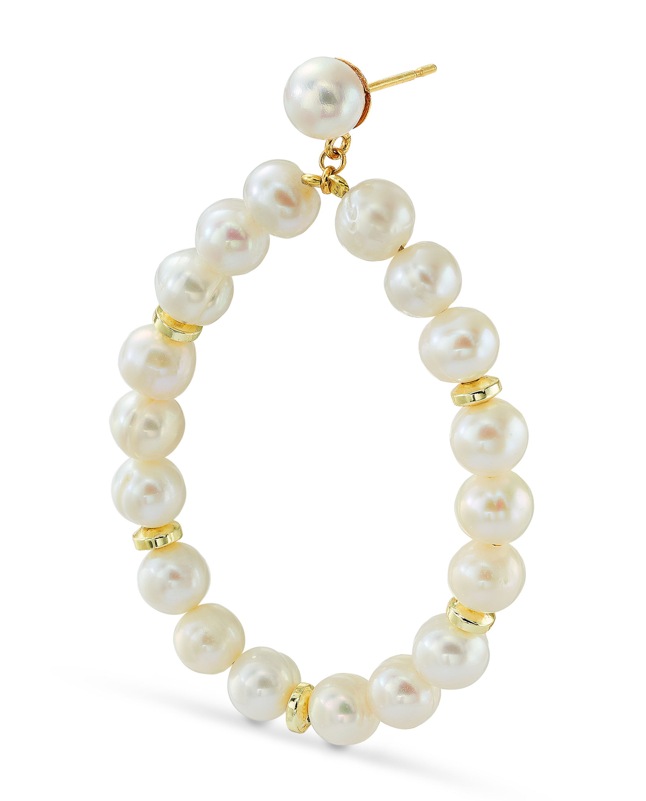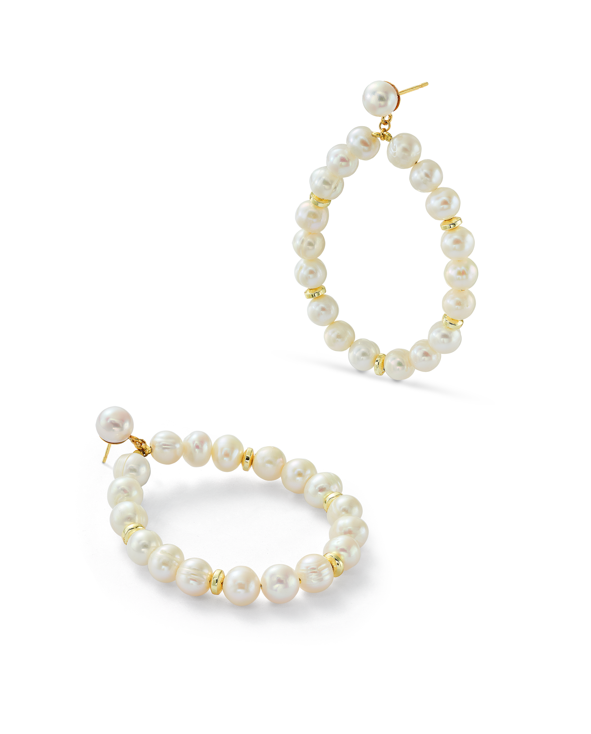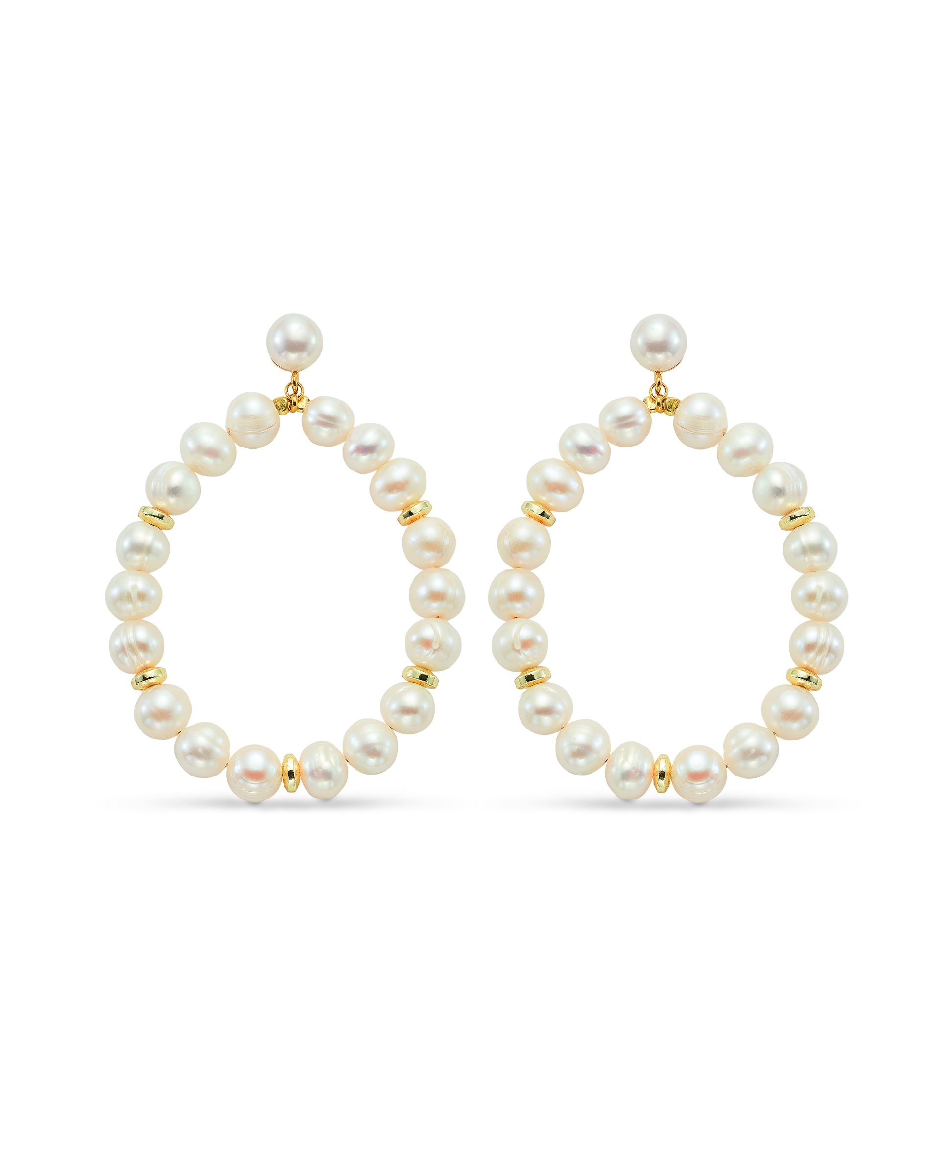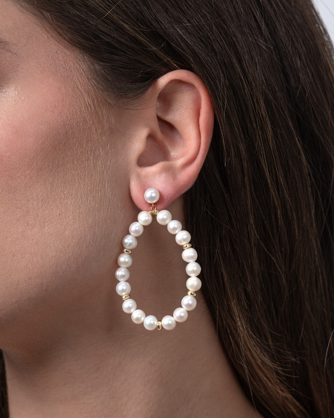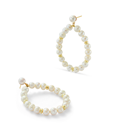 Aros en plata de ley dorada, colgantes perlas y hematites facetados. Medida largo total 5,5 cm aprox. Colección Costa Blanca.