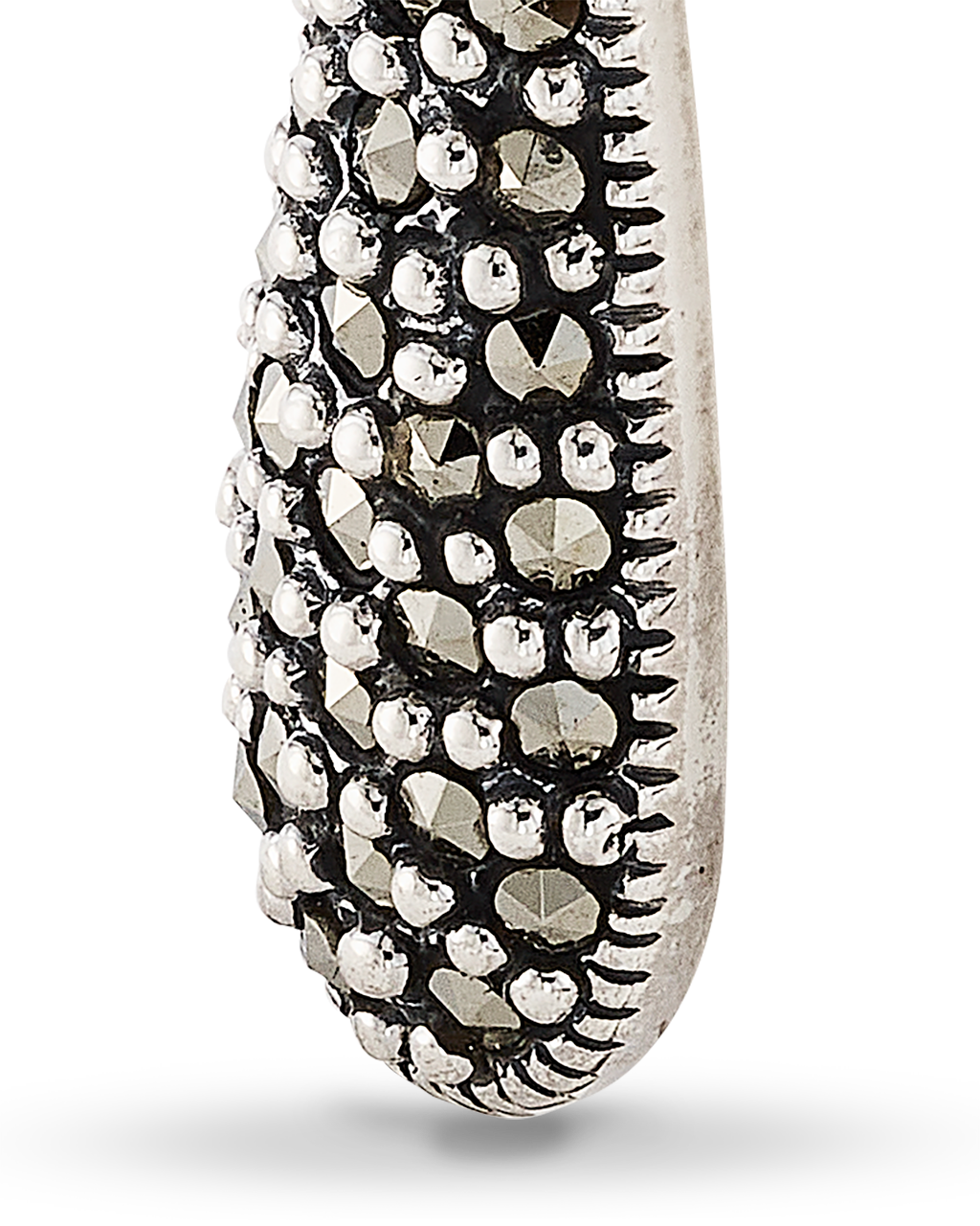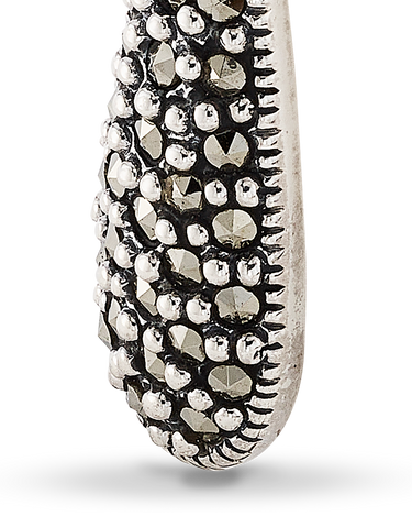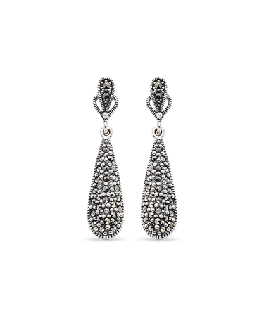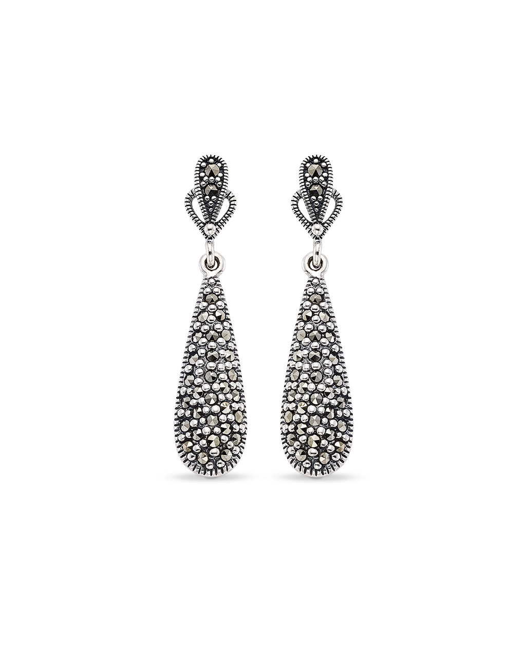 Pendientes colgantes gota marcasitas, plata de ley. Medida largo total 40 mm. Colección Viena.