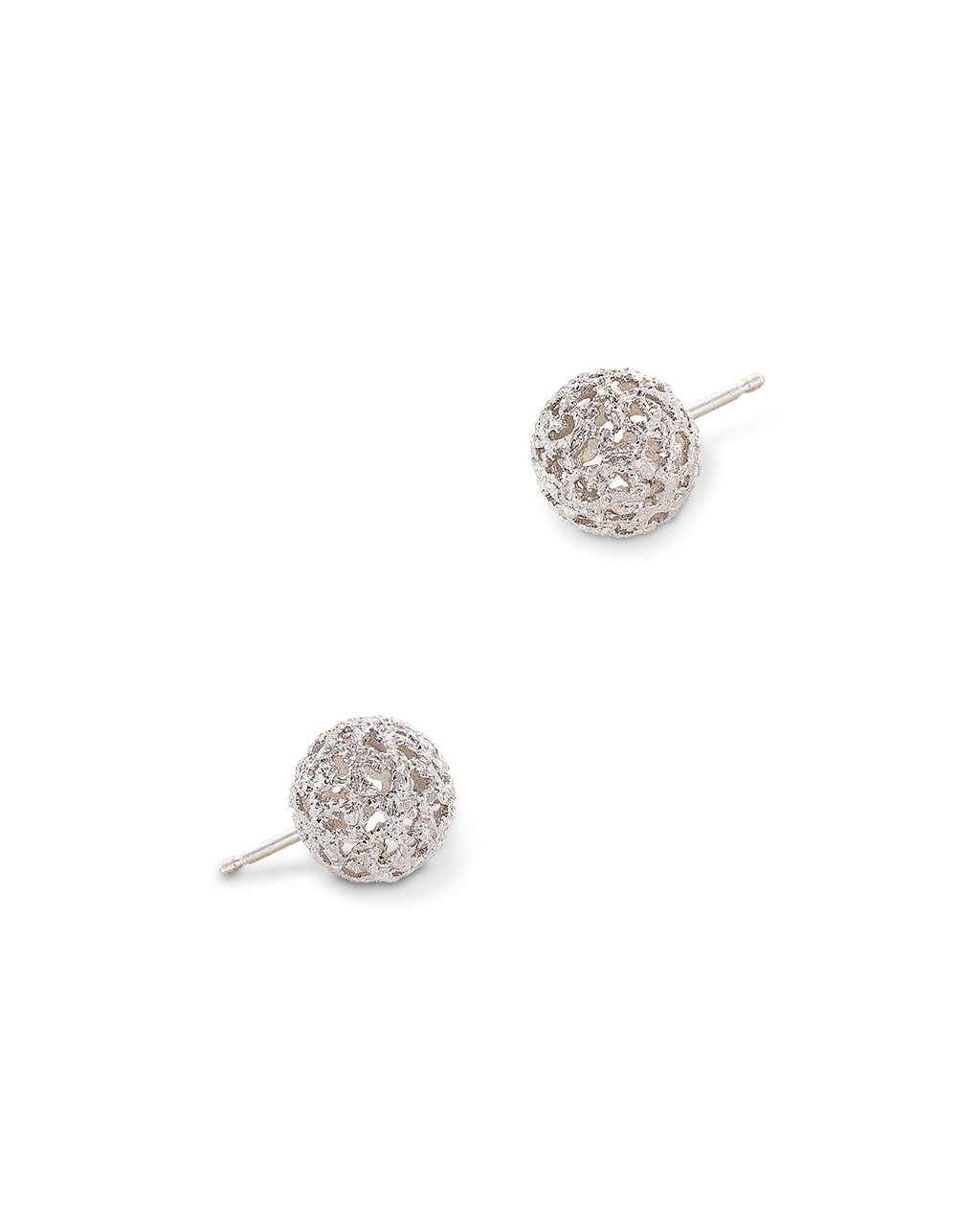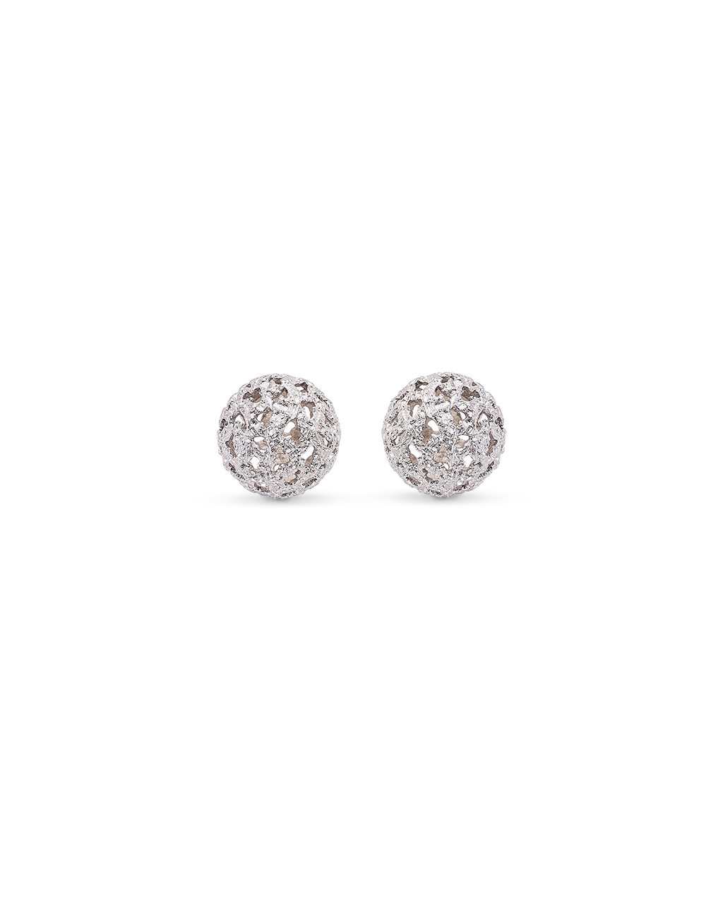 Pendientes bola filigrana acabado polvo diamante, plata de ley. Diámetro bola 9 mm. Colección Bolshoi.