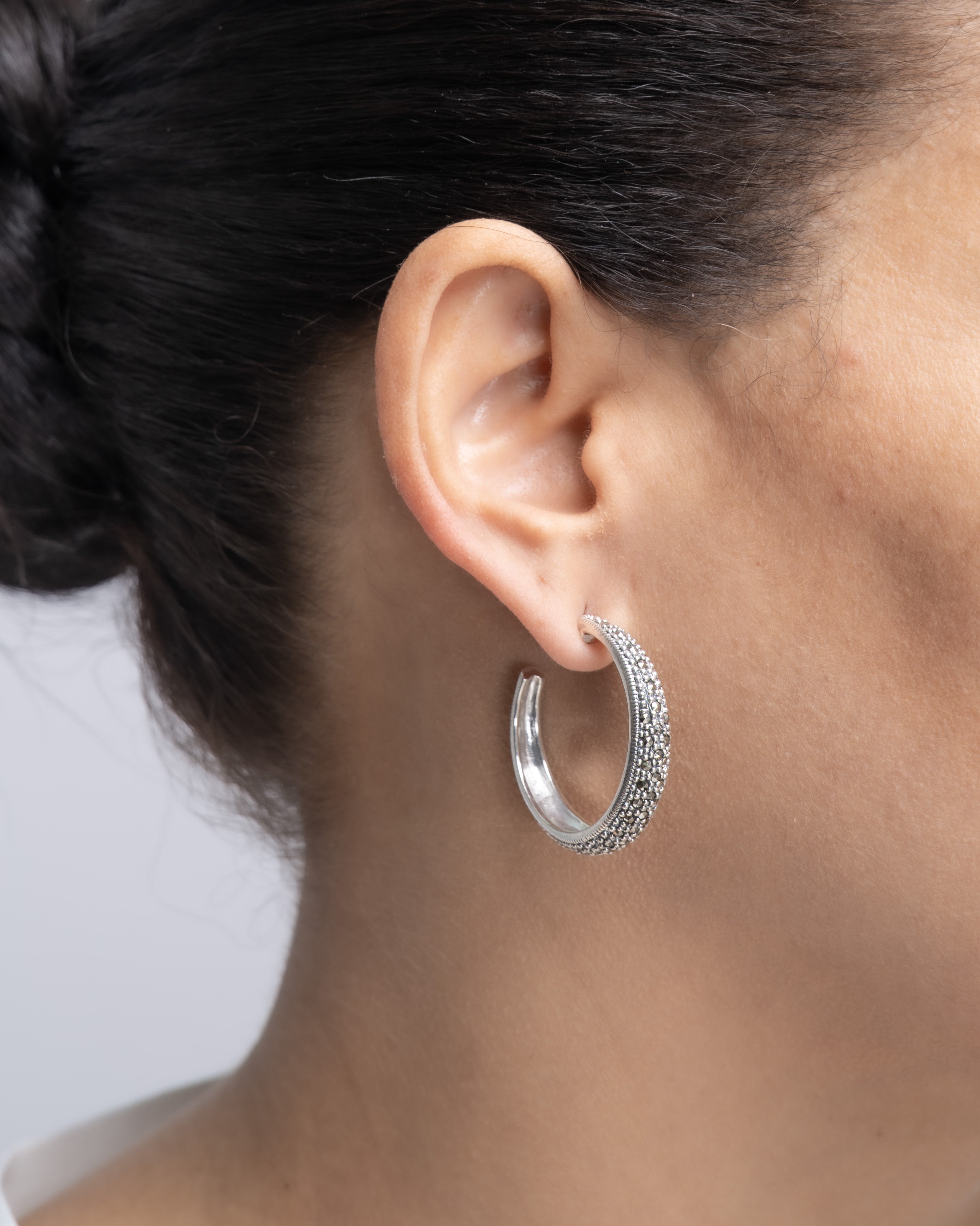 Aros marcasitas, plata de ley. Diámetro 34 mm, ancho 8 mm en disminución. Colección Viena