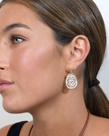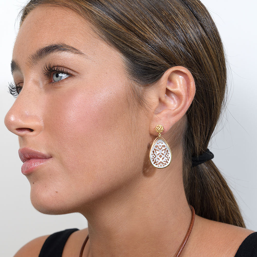 Pendientes perillas filigrana de madreperla, bolas filigrana, oro amarillo de 18K. Colección Alhambra fabricada artesanalmente en nuestros talleres.