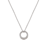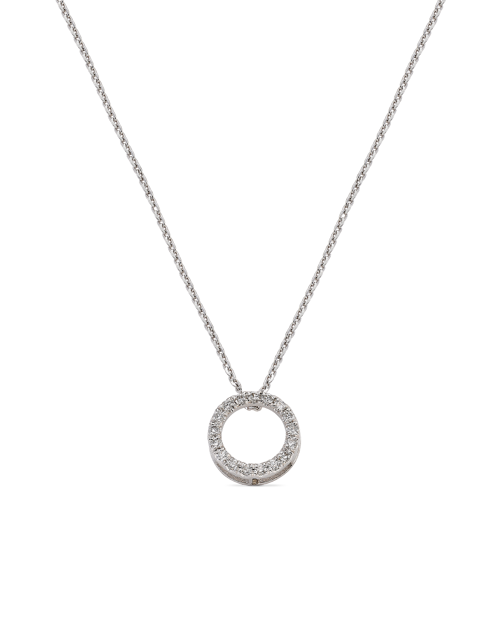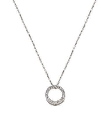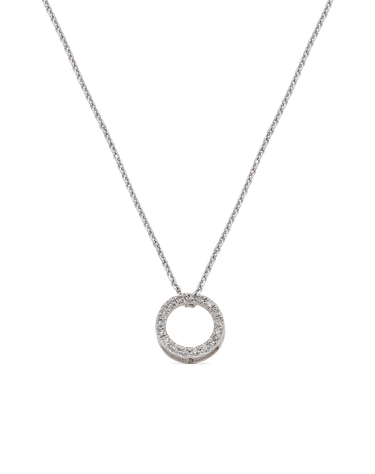 Colgante círculo diamantes, talla brillante, peso 0,10 ct, color G, pureza SI, oro blanco de 18K. Diámetro 6 mm. Cadena no incluida. Colección Prima.