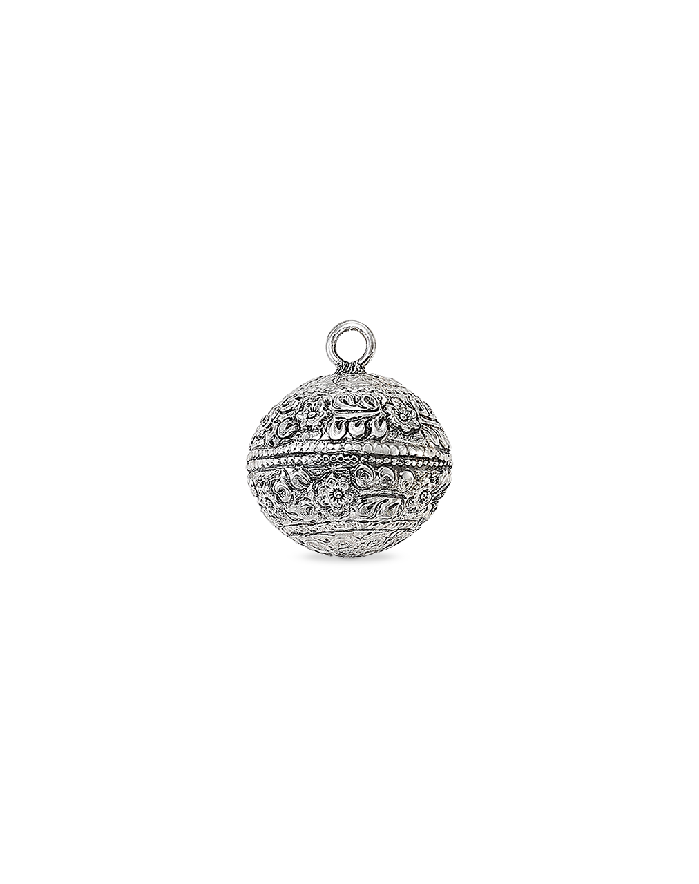 Colgante bola, llamador de ángeles, grabado flores, plata de ley. Diámetro: 2,3 cm. Colección Traviata.