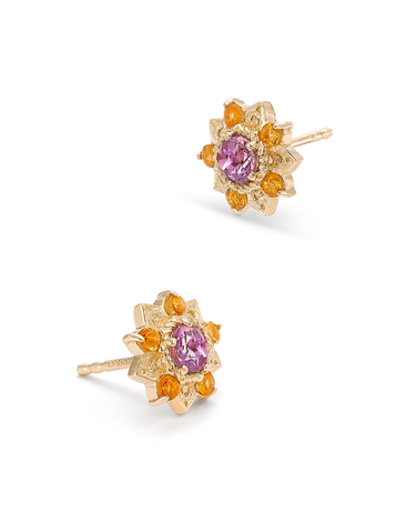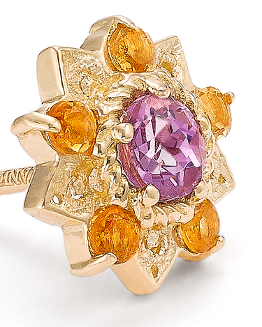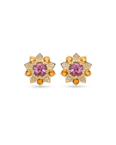 Pendientes Flor de Loto citrinos y amatista, oro
