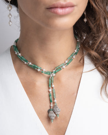 Collar Verdi ágata verde y perlas, plata