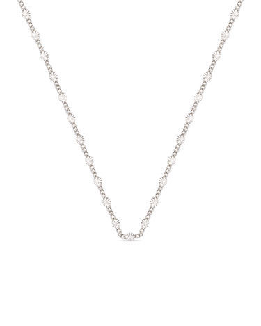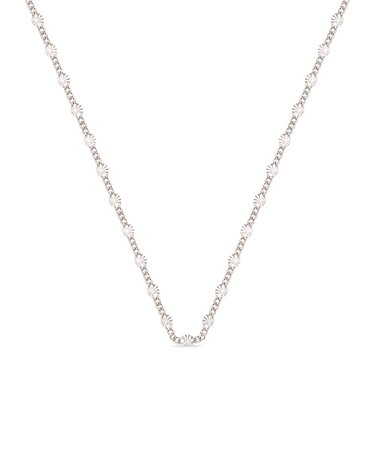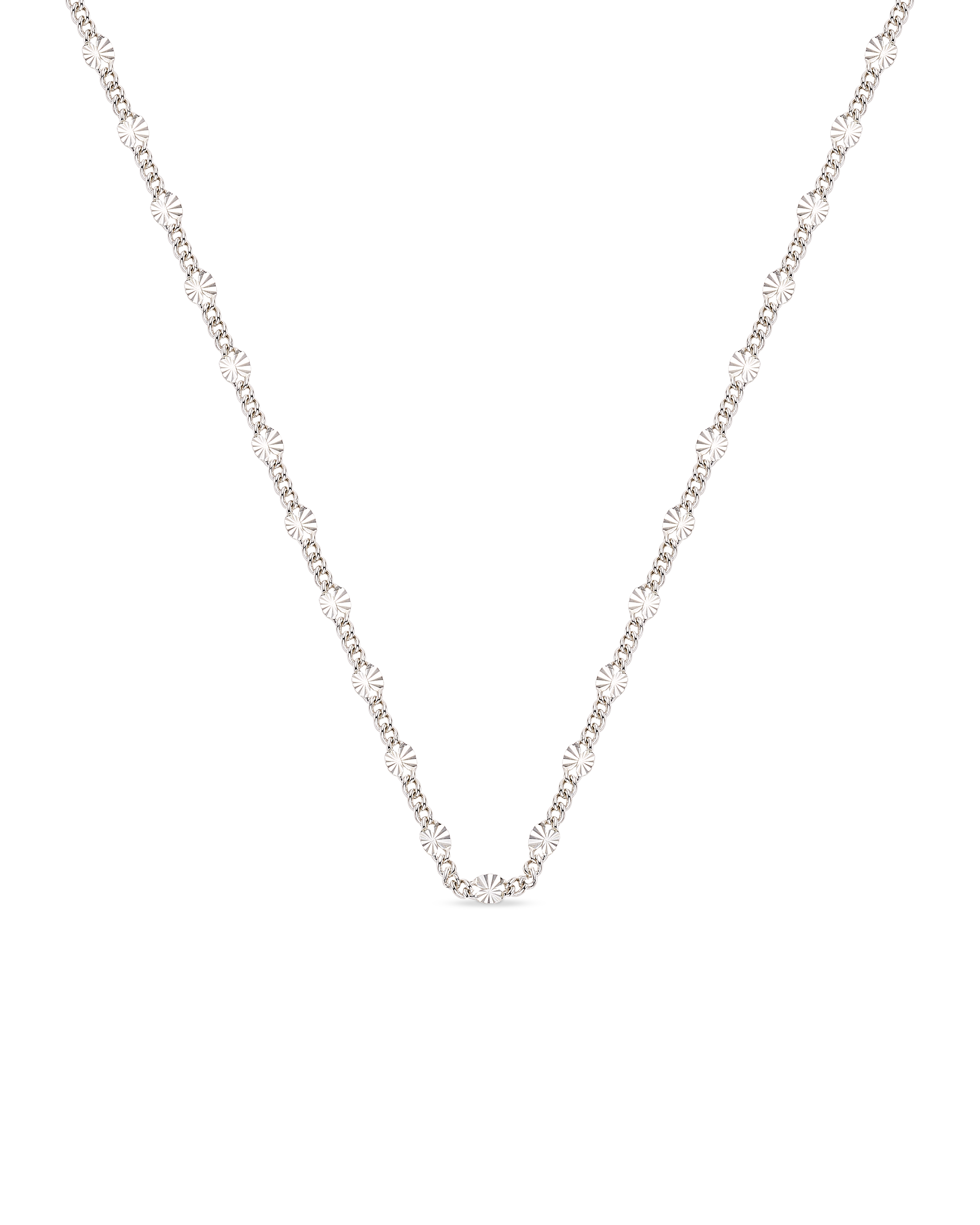 Cadena eslabones discos mini, plata de ley. Diámetro centros 3,5 mm, largo cadena 40 - 45 cm. Colección Met.