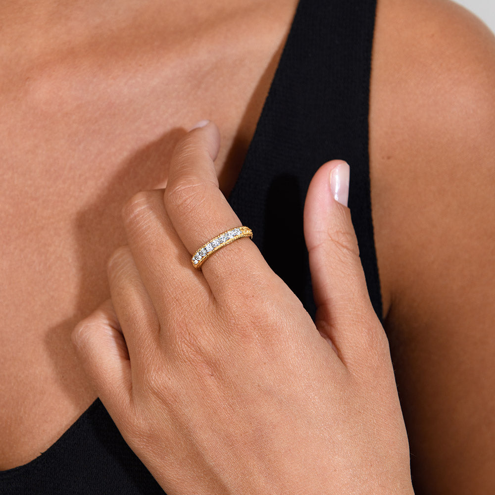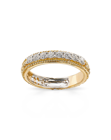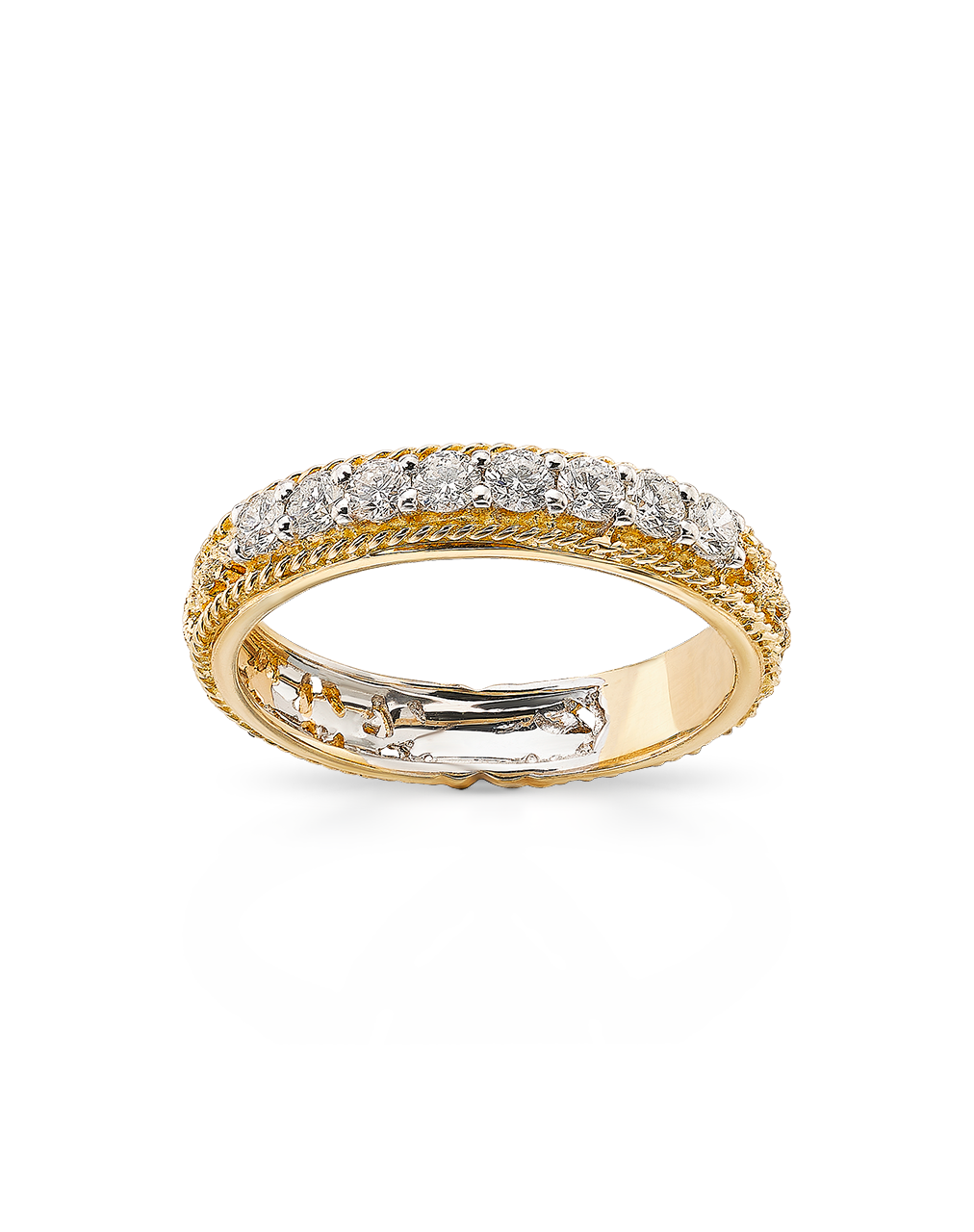 Alliance ring with 8 brilliant cut diamonds, weight 0.38 cts., filigree ring, 18K yellow gold. Width 4 mm. Alhambra collection handcrafted in our workshops.