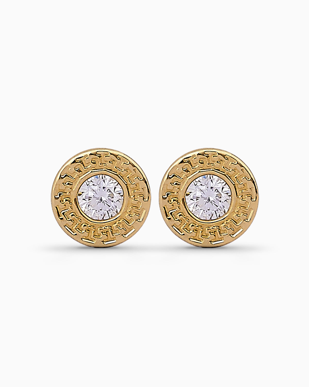 Pendientes diamantes 0,22 ct en orla labrada. Oro amarillo de 18K. Diámetro 6 mm. Colección Alhambra, fabricados artesanalmente en nuestros talleres.